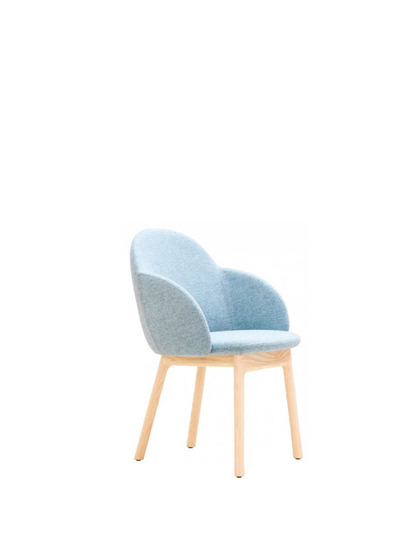 Iola is a versatile and internationally inspired chair collection defined by its sculptural, shell‑shaped form made from expanded polyurethane. Designed by E‑ggs, its ergonomic silhouette features soft wing‑like extensions that flow into generous armrests, giving the chair a modern, fashion‑infused presence while maintaining timeless appeal. Available across multiple base styles - lacquered metal, timber legs, and office variants - Iola adapts seamlessly to workplaces, hospitality venues, meeting rooms, and contemporary homes. With an extensive selection of wool and fabric upholsteries, plus a choice of lacquered or timber bases, the Iola family balances comfort, character, and flexibility for any environment.