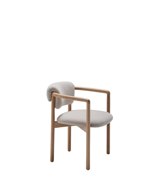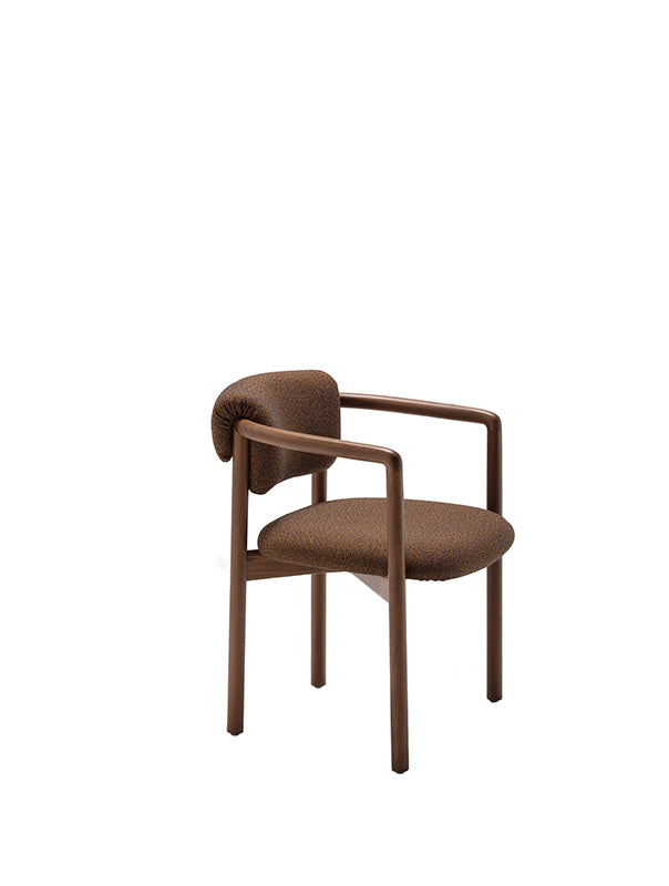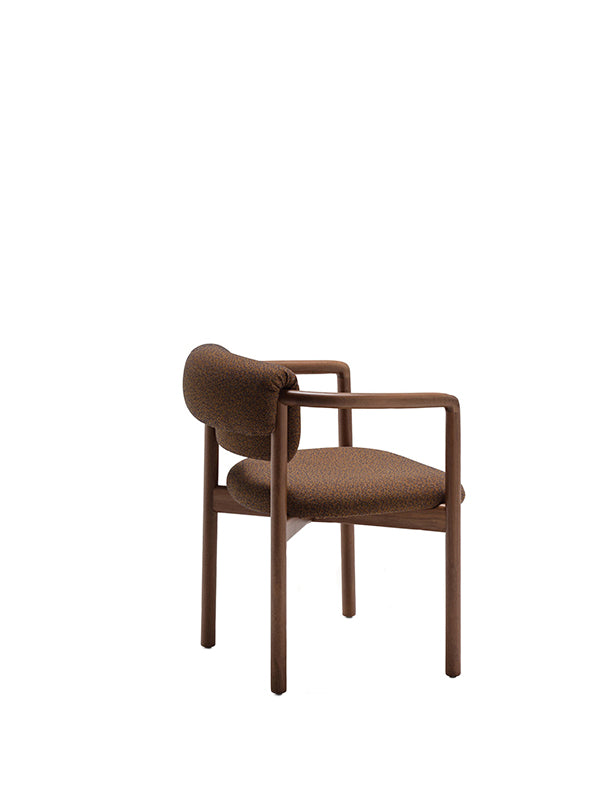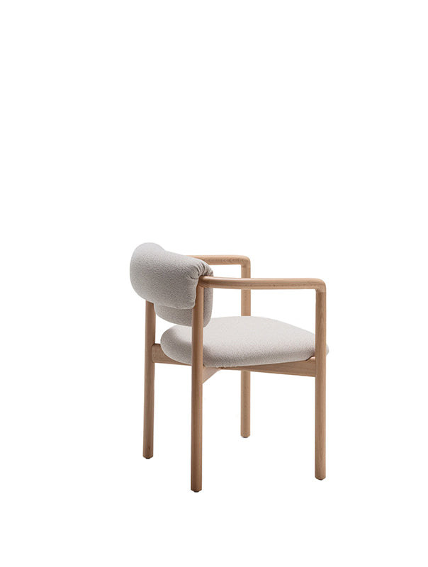 Joli designed by Note in 2023, is an inviting dining chair that prioritises the beauty of its back silhouette - the first detail most people see when approaching a table. Its beech wood frame provides a clean, refined structure, while the upholstered backrest features a soft, rounded volume that expresses Joli’s gentle, welcoming personality. Designed to look attractive from every angle, Joli balances comfort with a warm visual softness that suits both residential and commercial interiors. With natural or wenge‑stained beech finishes and a wide selection of fabrics, Joli is especially well suited to hospitality projects seeking elegance and comfort.