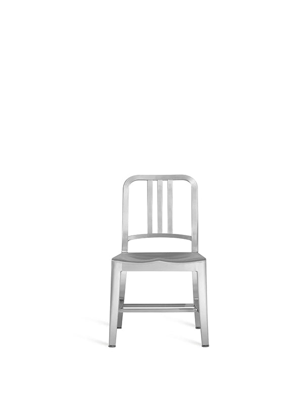 A scaled-down take on a timeless classic, the Navy Mini Chair is the smaller version of Emeco’s iconic 1006 Chair, originally designed for the U.S. Navy in 1944. Handcrafted in Hanover, Pennsylvania from 80% recycled aluminium, it delivers the same legendary strength and durability in a compact form. Lightweight, fire-resistant, non-corrosive, and outdoor approved, the Navy Mini is truly built to last a lifetime. Soft TPU glides ensure versatile use across different flooring, while an optional seat pad in a variety of colours adds comfort. With a low carbon footprint and enduring style, the Navy Mini embodies Emeco’s signature strength - on a smaller scale.
