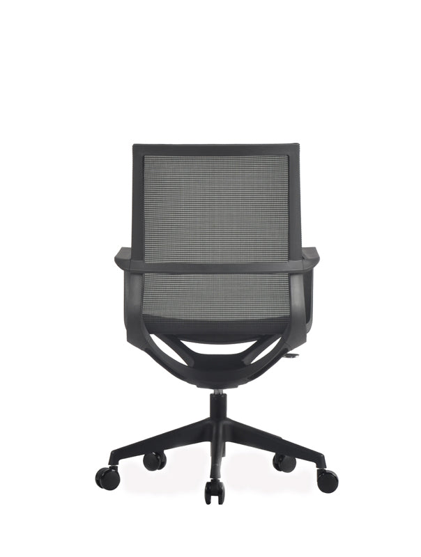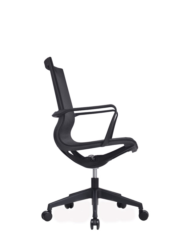 The Nero Chair is a sophisticated blend of style and support, perfect for meeting rooms, boardrooms, or home offices. Its sleek, one-piece curved frame with integrated seat and back is wrapped in premium black mesh, offering breathable comfort during long hours of work. Fixed loop arms are designed at the ideal height to slide neatly under desks or tables, while the simple single-lever mechanism ensures easy adjustments. Built for durability with a 135kg weight capacity, the Nero Chair is BIFMA certified and backed by a 10-year warranty, delivering lasting performance with modern elegance.